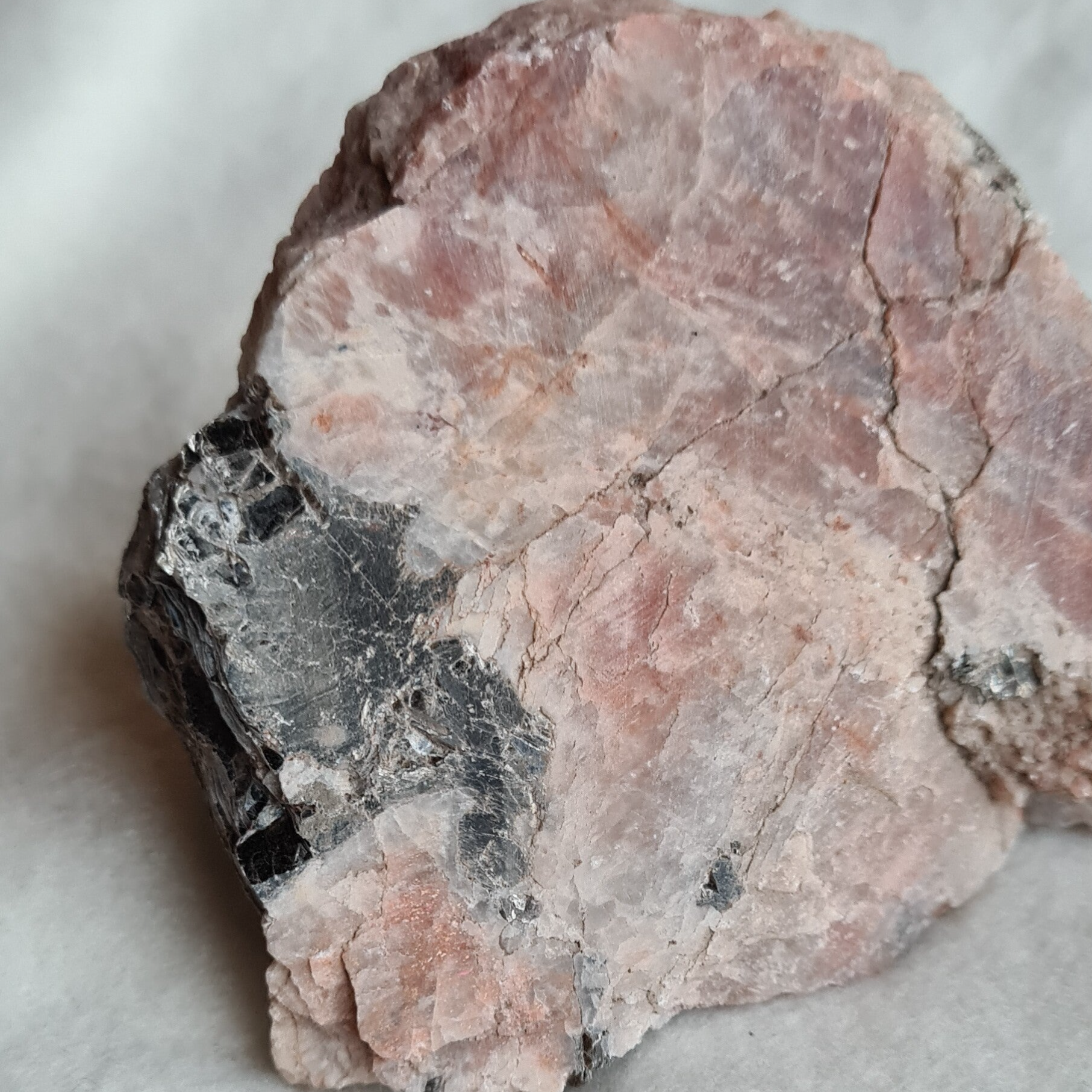 Ruwe zonnesteen met mica, één gezaagde zijde