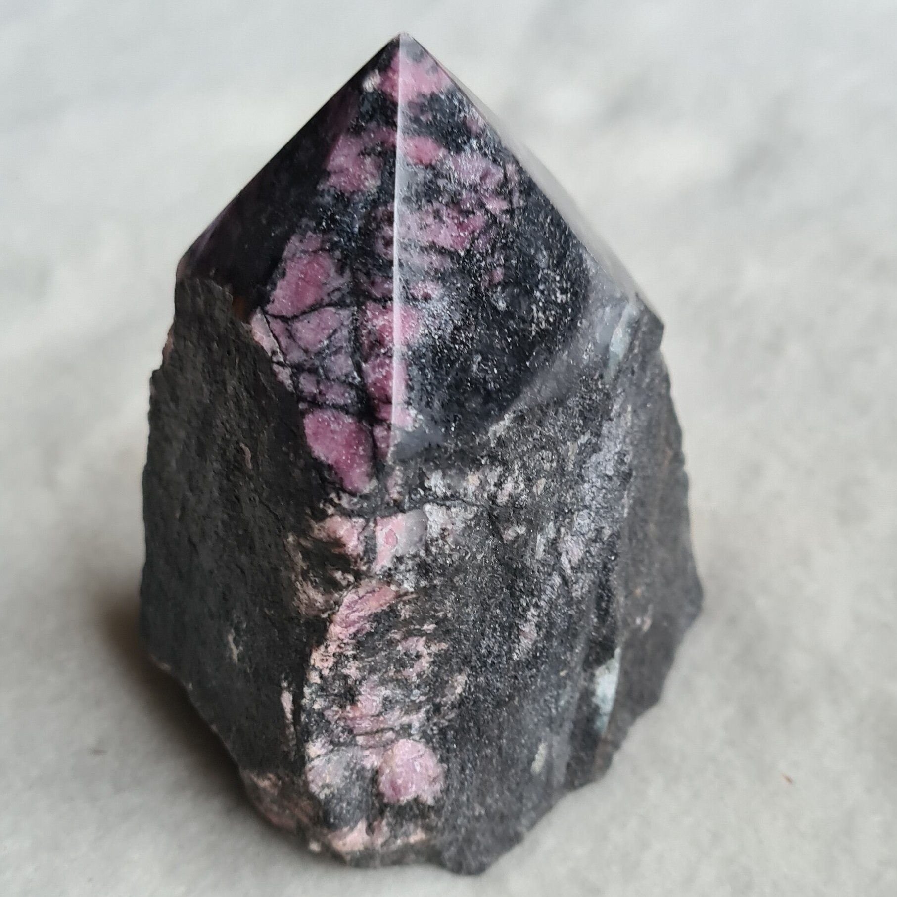 Rhodoniet punt, ruw met geslepen punt