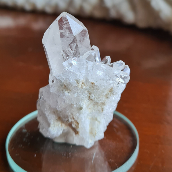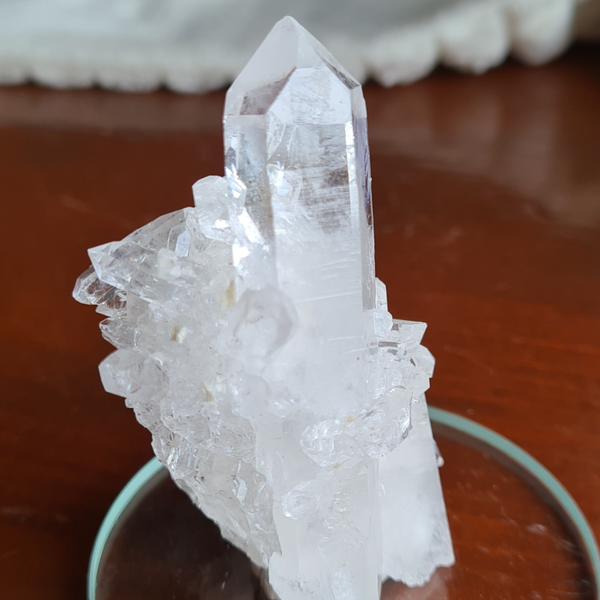 Bergkristal cluster op sokkel