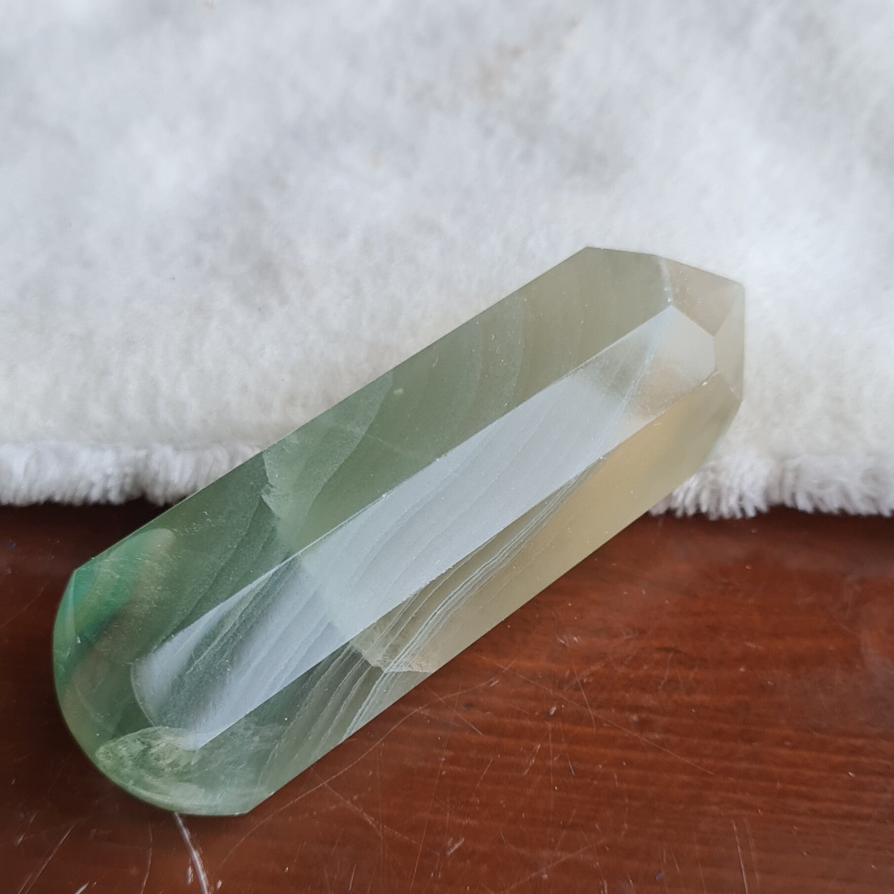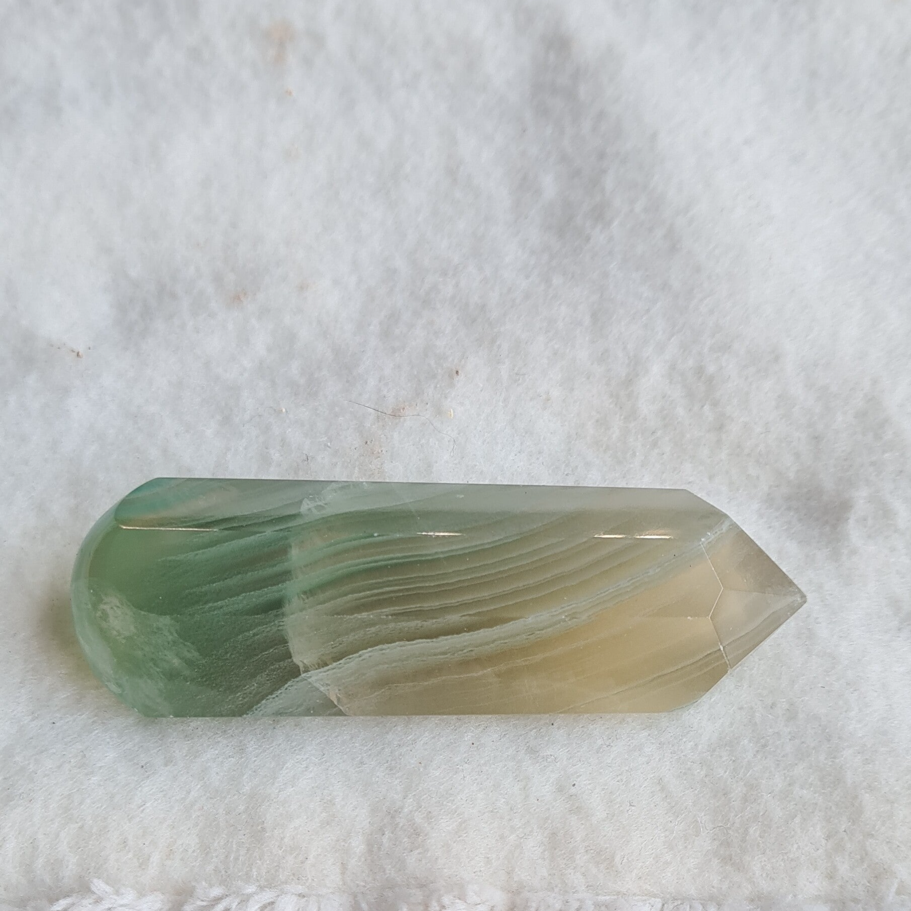 Fluoriet, groen geel, punt met ronde onderkant