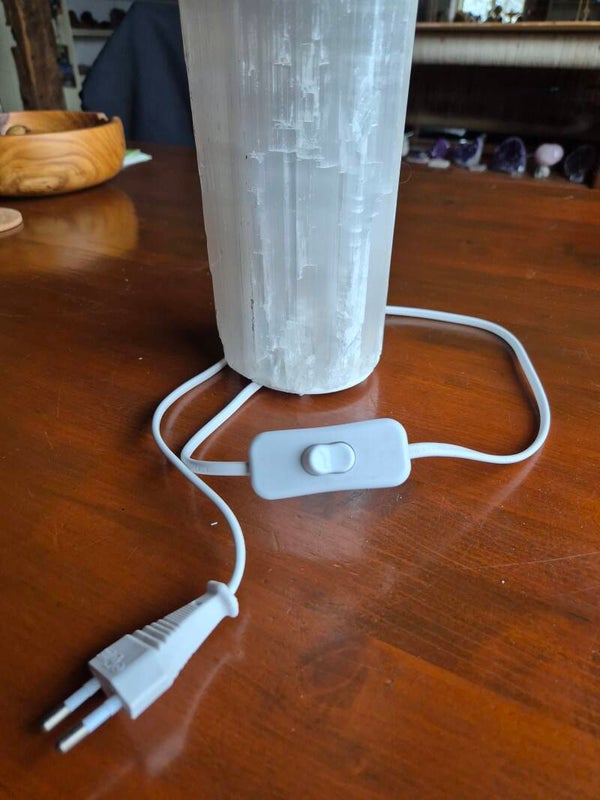 Lamp (compleet) van Seleniet (Satijnspaat) model kolom